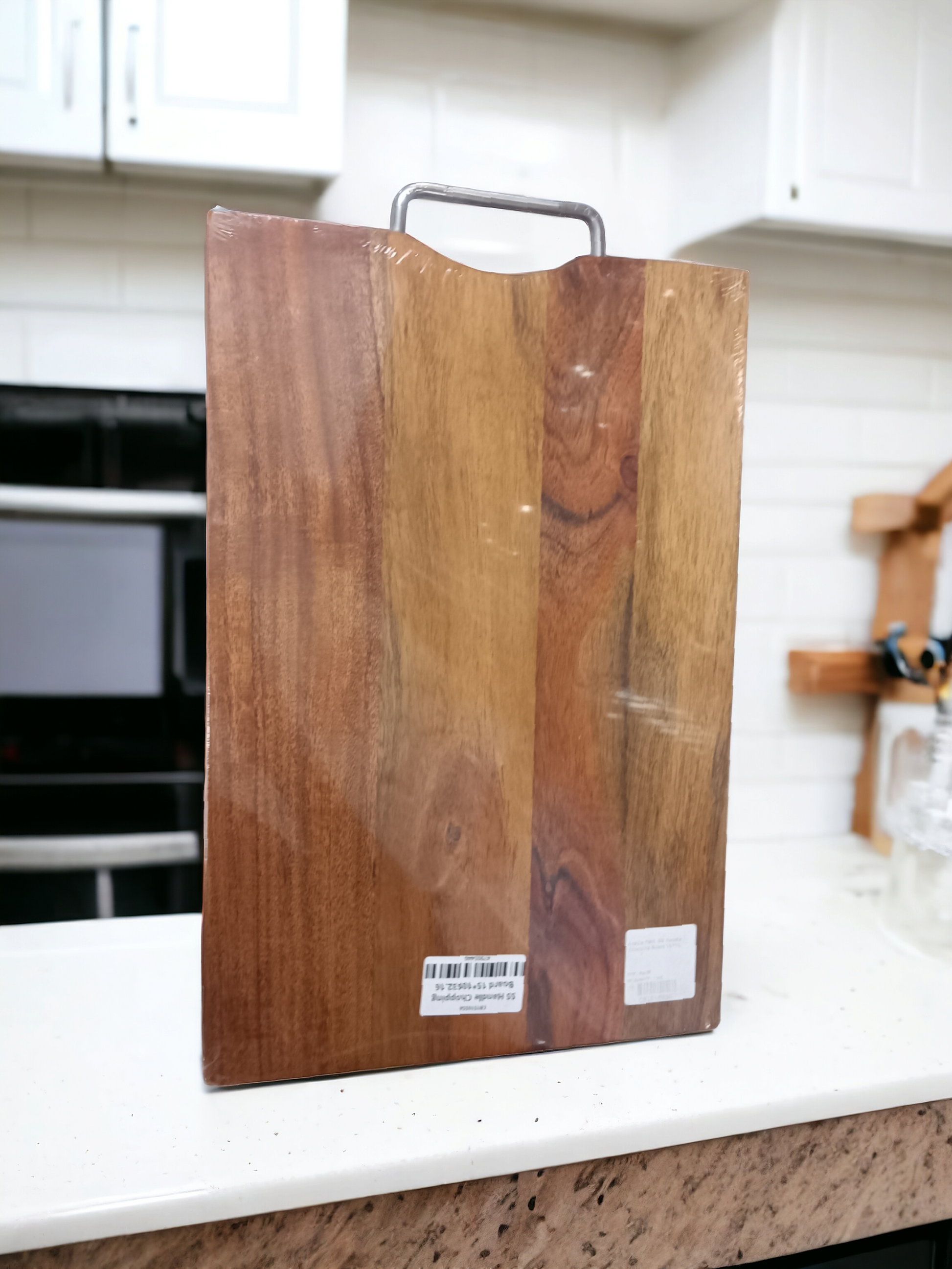 Acacia Rectangle SS Handle Chopping Board 15x10