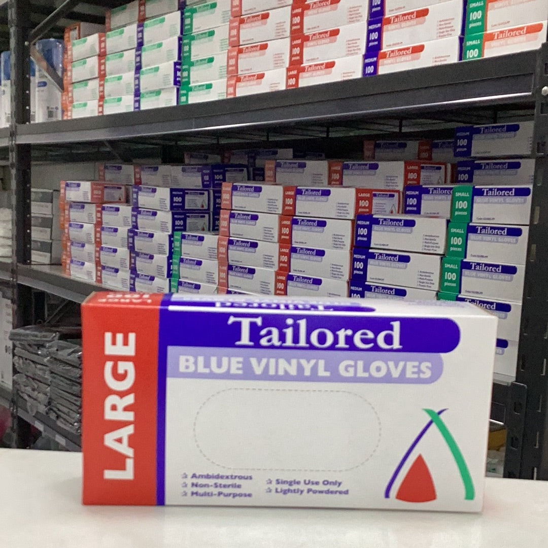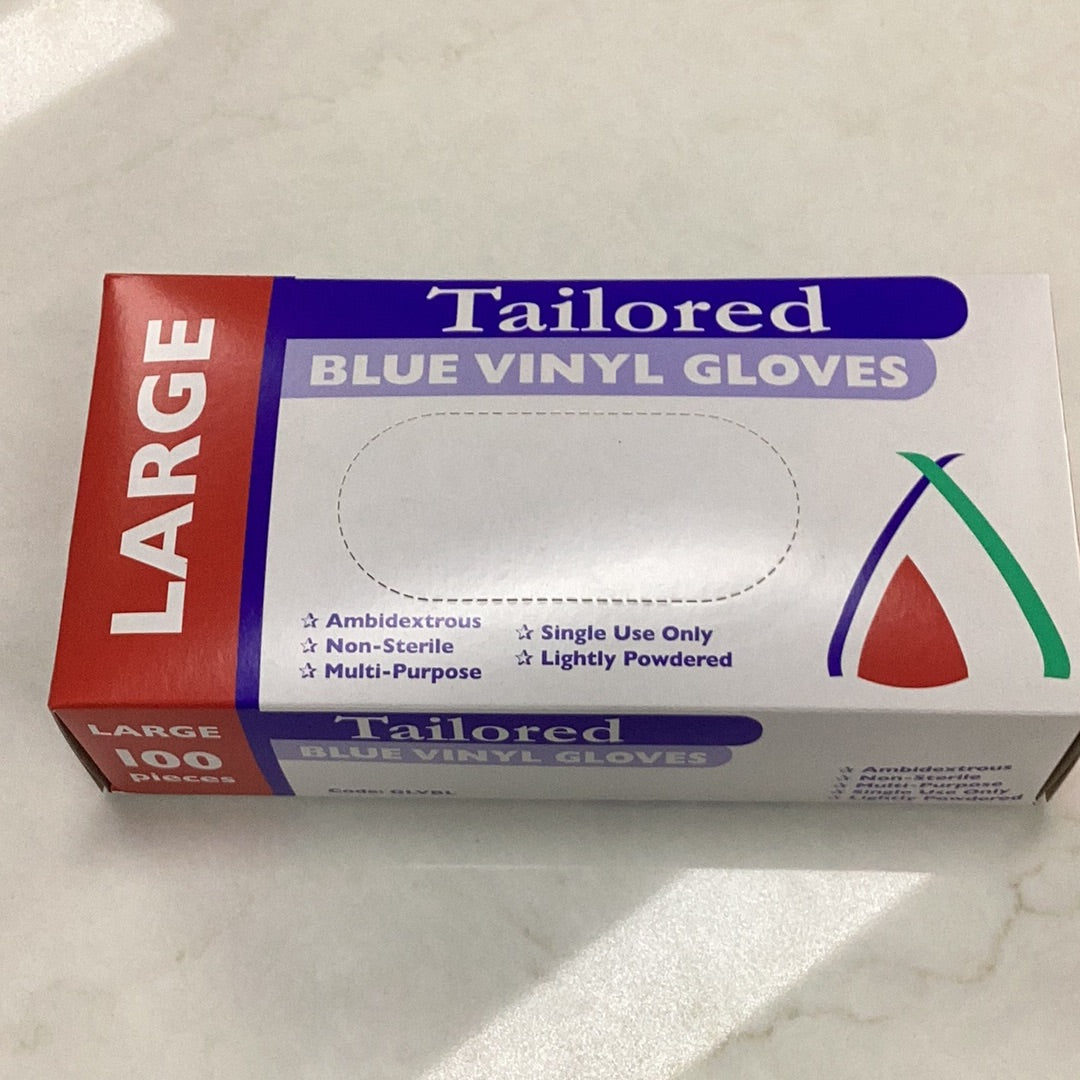 BLUE VINYL Powdered GLOVES - Large 100pk