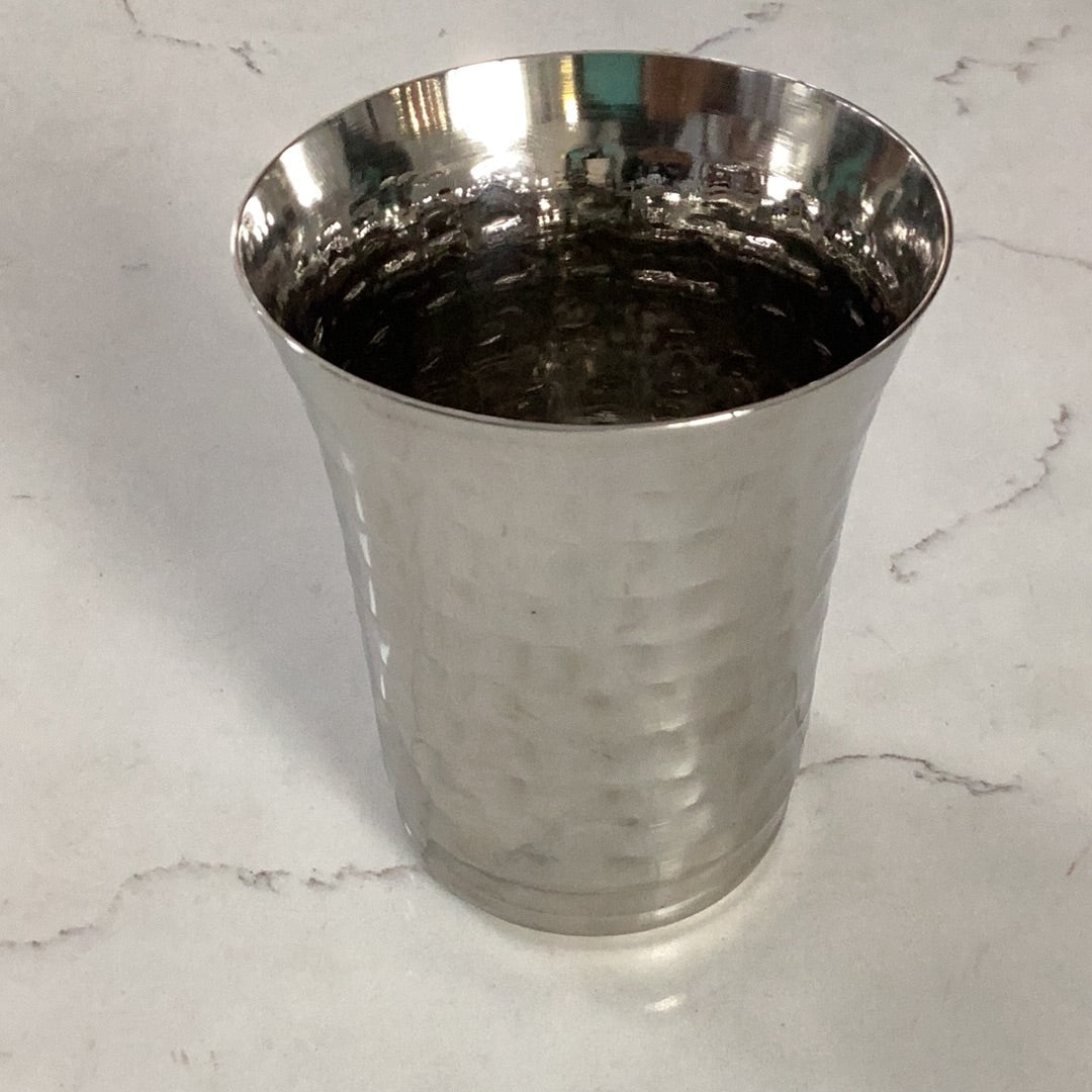 STAINLESS STEEL HAMMERED DRINKING GLASS. STRAIGHT. 3.5" TALL