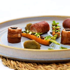 - Crafted by a reactive glaze, each piece has a unique look creating a collection that exudes calm and tranquility will complement all cuisines.