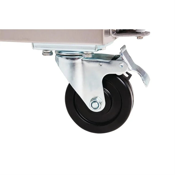 Lockable castors ensure stability and allow easy positioning for cleaning when required. The fridge is also both effective and efficient, keeping running costs down even when kitchen temperatures reach up to 43°C. Great for when a service heats up.