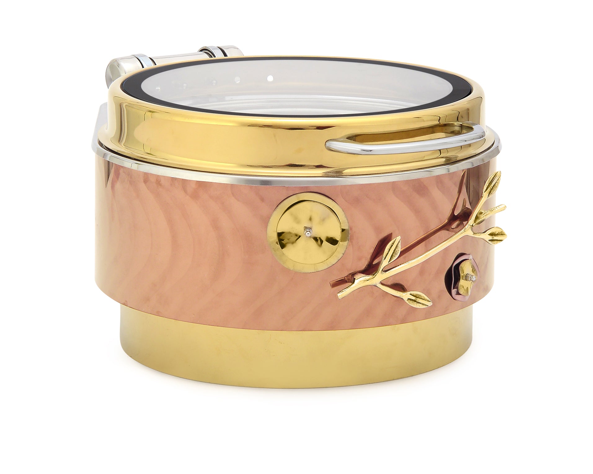 Round 7 ltrs Full Glass Chafing Dish with Frame Stand type Chafing Dish. With Flora design Stand