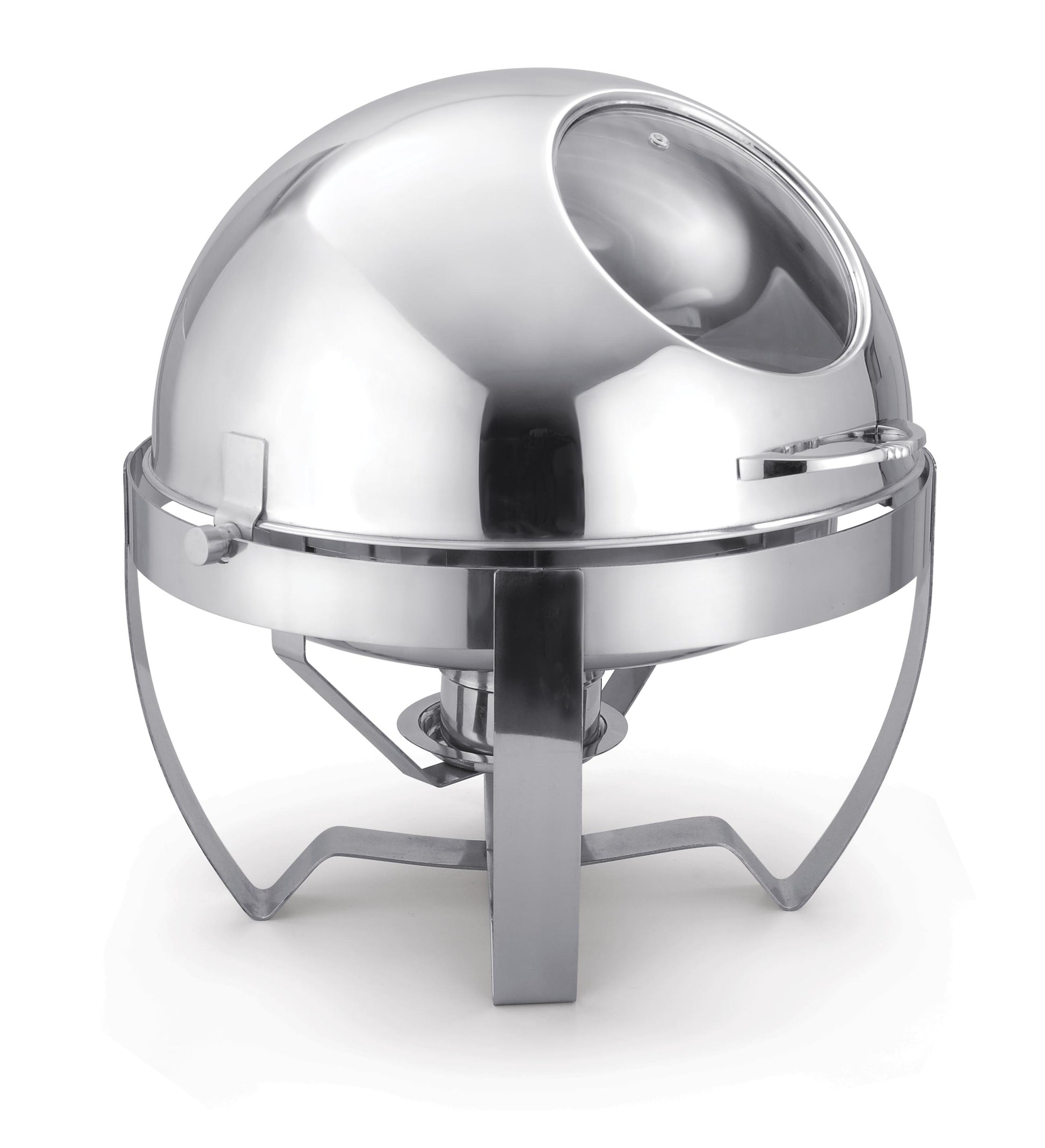 Round Full Roll Top Chafing Dish Large size, With J Type Stand, With Glass Window, With 38 cms Food Pan Lid Rotates upto 180¡ with automatic locking at 90¡.