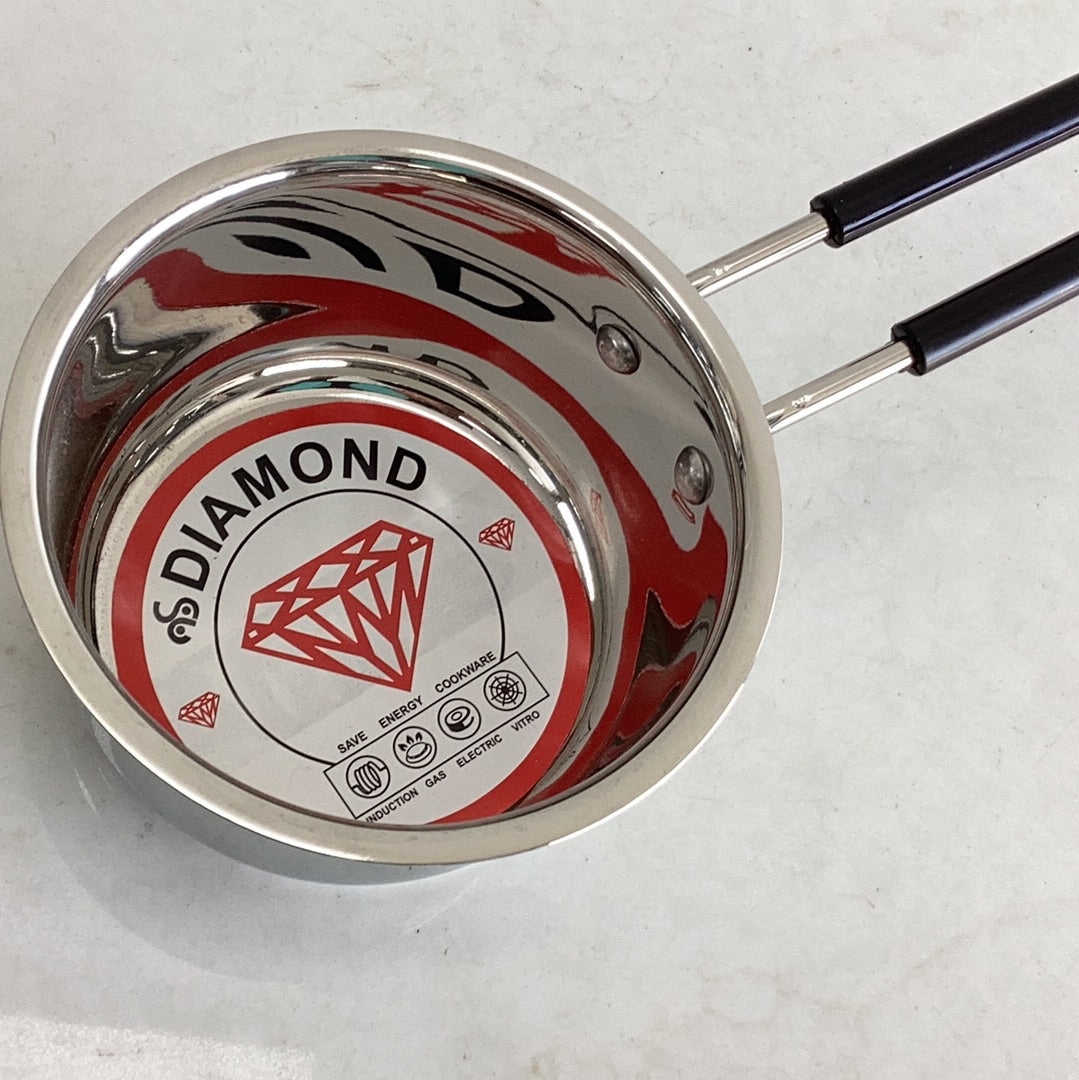 STAINLESS STEEL SAUCEPAN WITH BLACK HANDLE -WIDTH -14cm