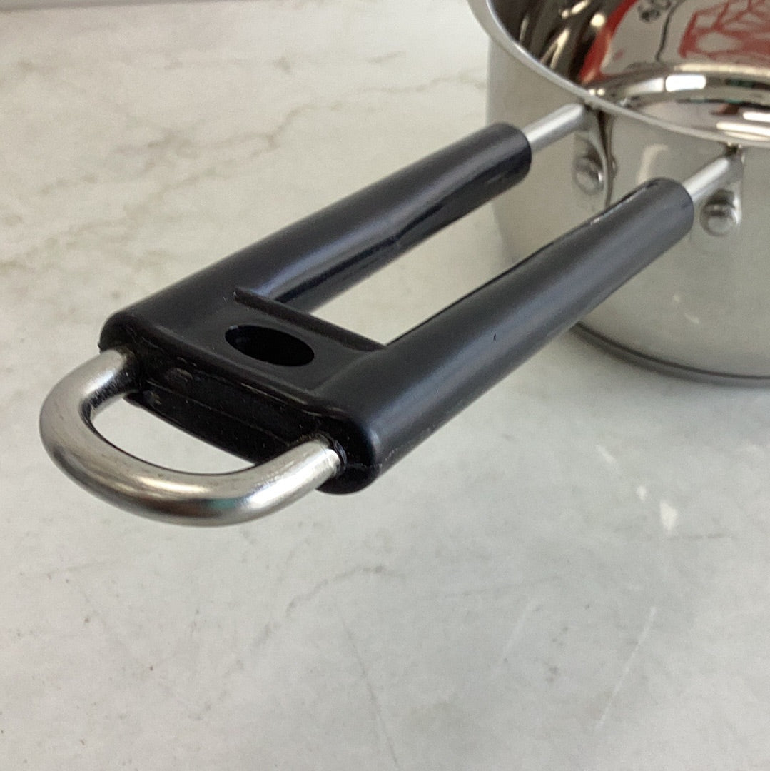 STAINLESS STEEL SAUCEPAN WITH BLACK HANDLE- WIDTH -16cm