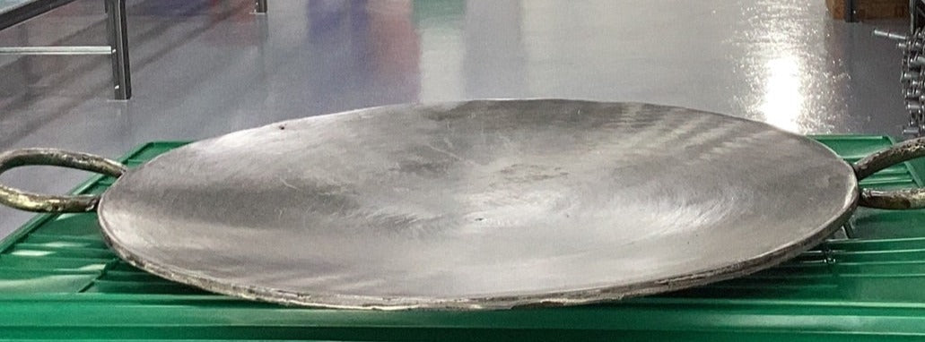 SKILLET/ TAWA ROUND -very heavy with 2 handles. Can be used for meat,veg,roti,paratha or bread etc-45cm wide-6mm thick