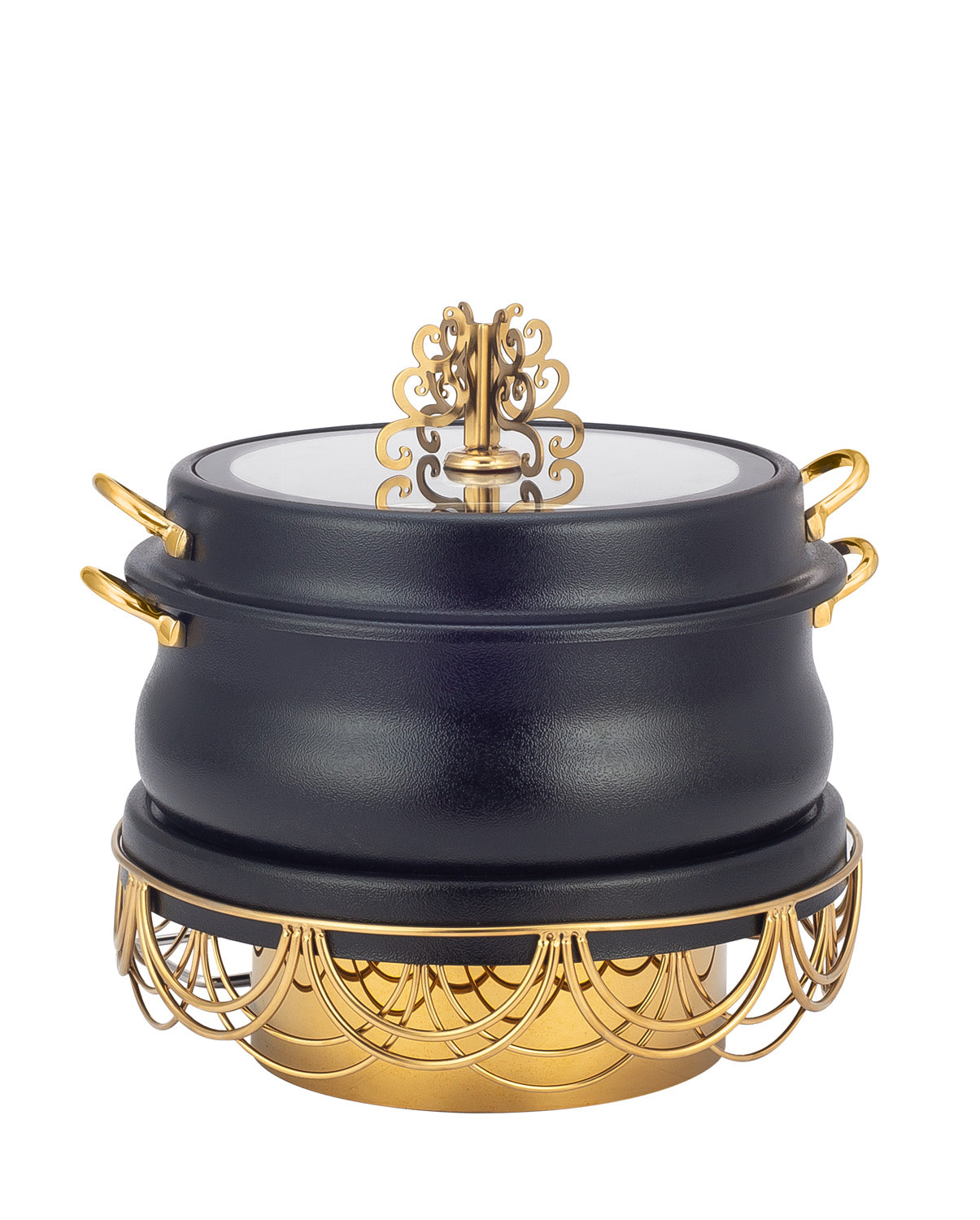 Stainless Steel Round 7 Ltrs Chafing Dish, With CC design Stand. With Glass Window. (Induction Heater/ Heating Plate Not Included).