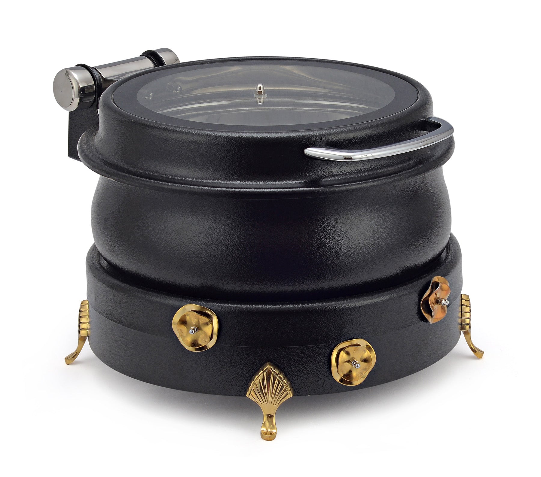 Stainless Steel Round 7 Ltrs Chafing Dish, With Flora design Stand. With Glass Window. With cover control mechanism.