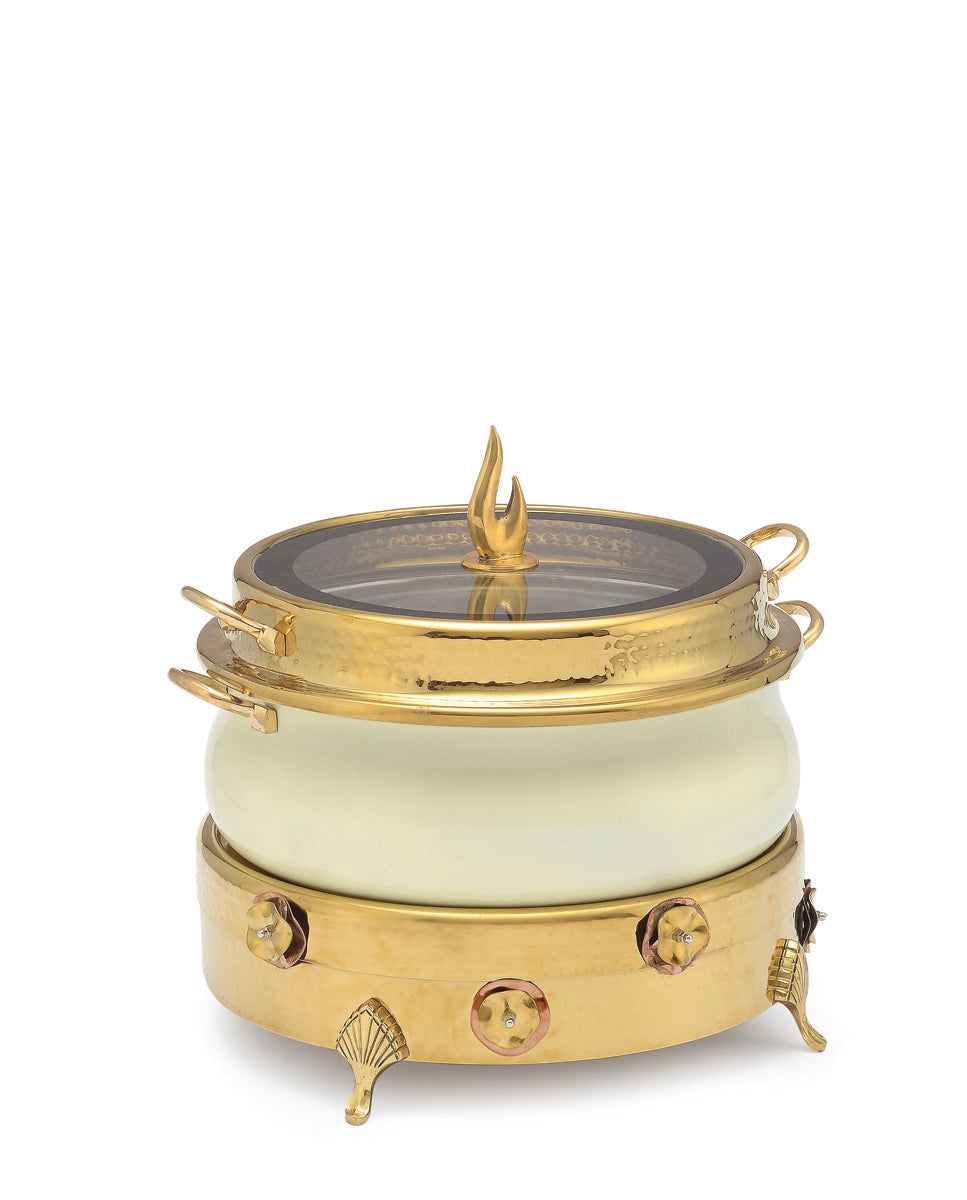 Stainless Steel Round 7 Ltrs Chafing Dish, With Flora Design. With Full Glass Window. (Induction Heater/ Heating Plate Not Included).