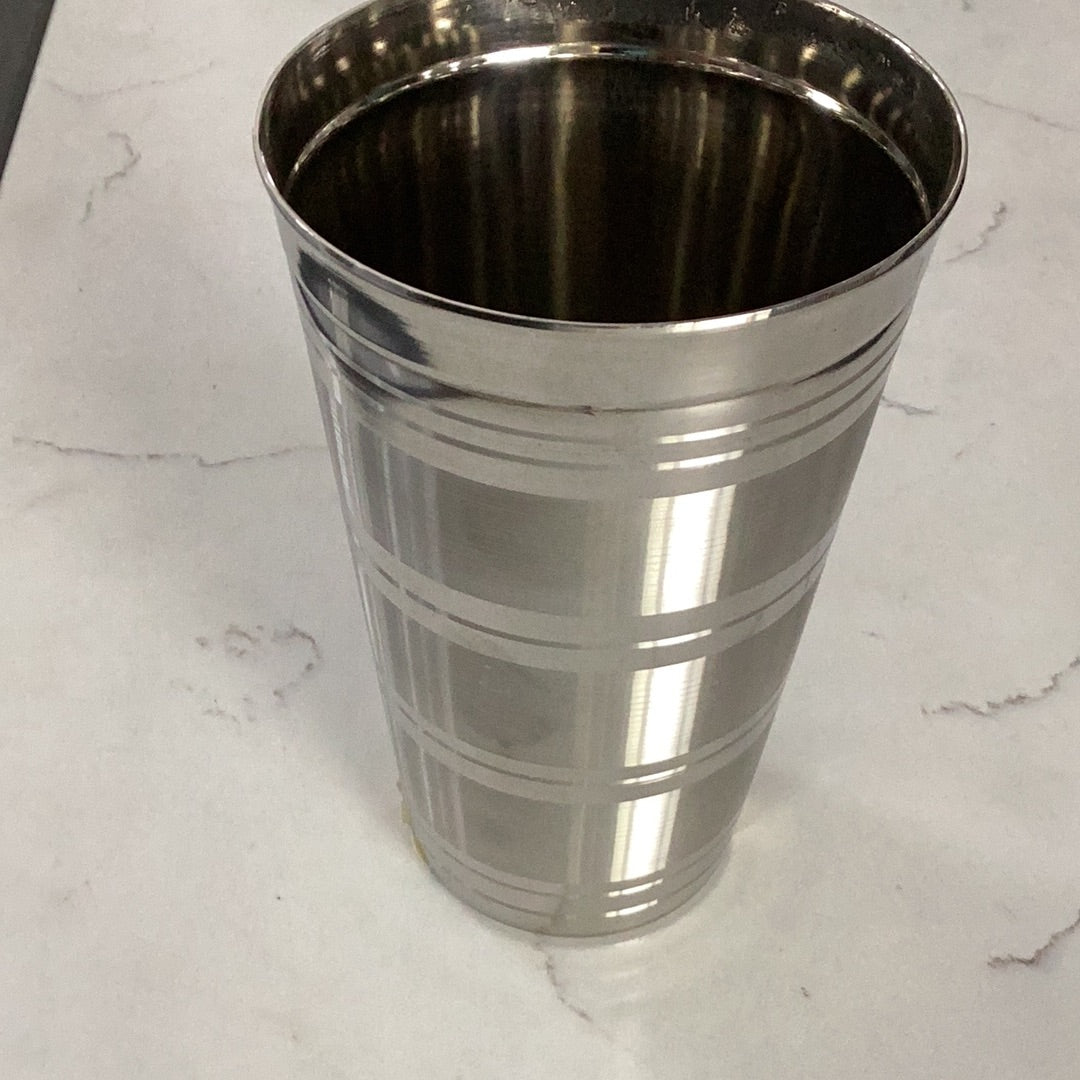 STAINLESS STEEL TALL GLASS -BRUSHED LINED-14 cm tall. Wide- 10cm.