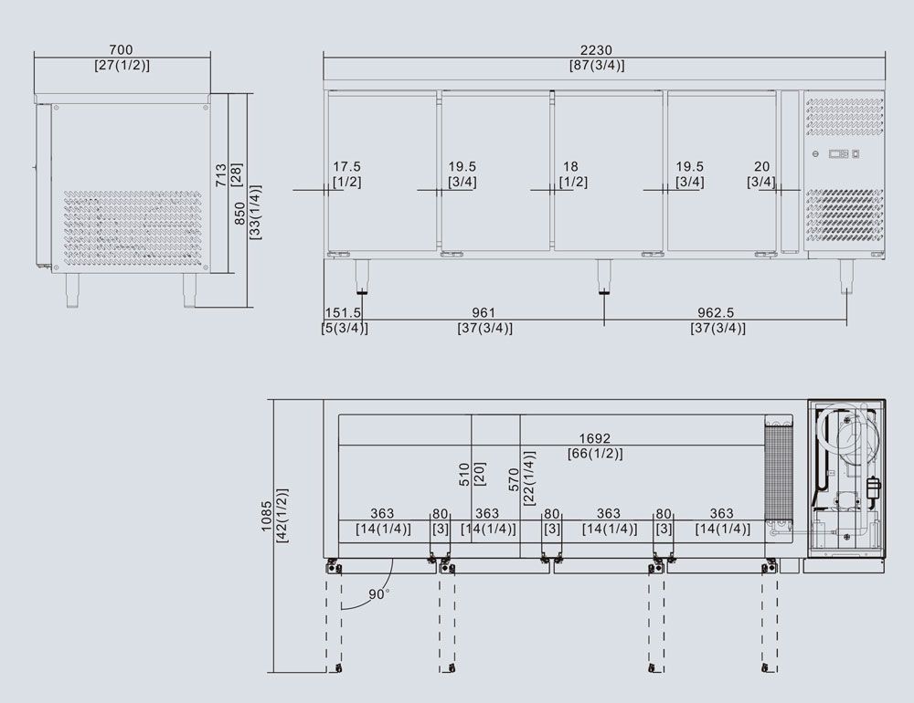 UNDERBENCH FOUR DOOR COOLING FRIDGE TABLE 2230 MM EPF3442